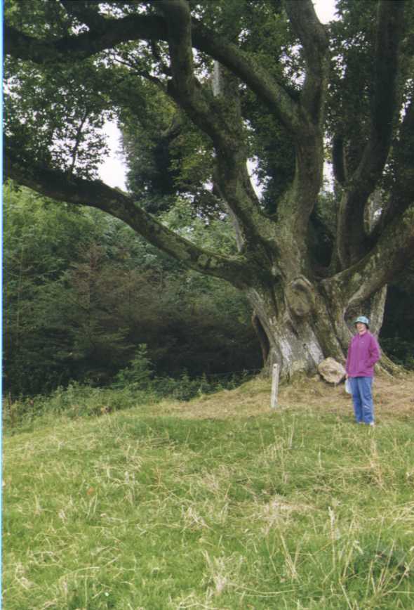 One Sunday afternoon in September 2000 we visited Tuamgraney with the intention of walking to the Oak following the largely circular route we walked in 1992. We had a most disappointing experience. Management of the woodland had changed and it had become a walk for pioneers and frontiersmen. We encountered forest roads that were difficult to walk on. Old woodland paths marked on a 1992 map of the walk were difficult to find. A lodge by one of the forest tracks had fallen into a state of disrepair. Unfortunately the Heritage Center was closed so we do not know of any plans to restore the woodland to its former state.