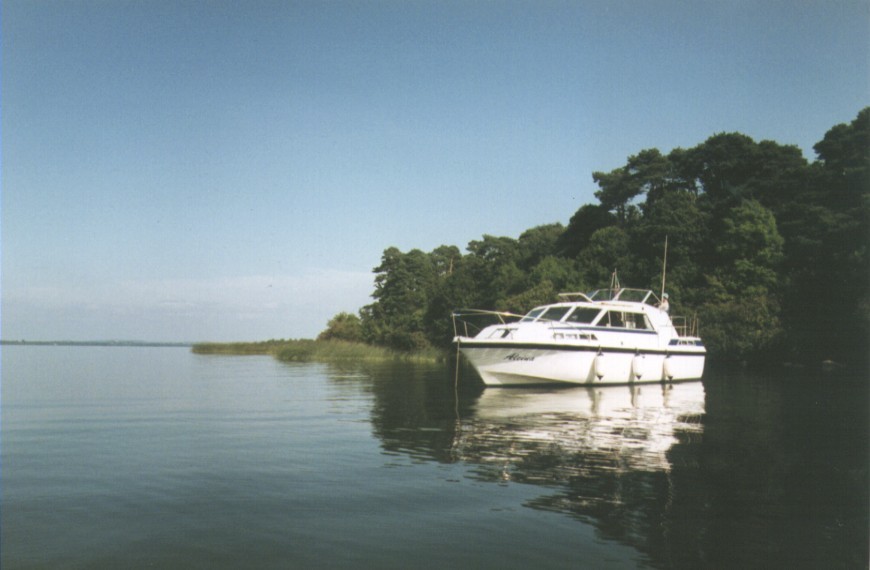| The start of this walk is at Bunglasha Bay. This is close to a very treacherous part of Lough Derg. Hence this walk should only be contemplated in good settled weather. Approach carefully paying attention to the Admiralty Chart and being conscious of when it was last updated. Having anchored proceed ashore in the dingy.Various walks are possible. One possibility is to follow the path around Aughinish point and follow the road to Ogonnelloe. (R692818). Then head north along the road to the bay south east of Piper Island. From there follow the lakeside path back to Bunglasha. Shorter walks are obvious from the map.